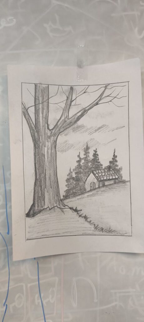 معلم هنر مدرسه سلام با آموزش اصول اولیه طراحی، نحوه استفاده درست از مداد، خطوط و سایهزنی، زمینهای را فراهم کرد تا دانشآموزان بتوانند مناظر ساده و طبیعی را با دستان خود ترسیم کنند. استفاده از تکنیک سایهروشن، علاوه بر زیباییبخشیدن به آثار، به هنرجویان کمک کرد تا نگاه دقیقتر و هنرمندانهتری نسبت به محیط پیرامون خود پیدا کنند.