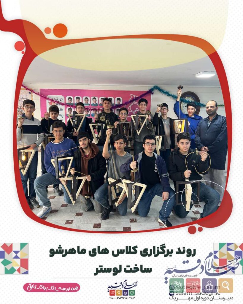 در راستای تقویت مهارتهای عملی و پرورش خلاقیت دانشآموزان، کلاس مهارتآموزی ساخت لوستر چوبی پایه نهم در مدرسه سلام صادقیه برگزار شد.